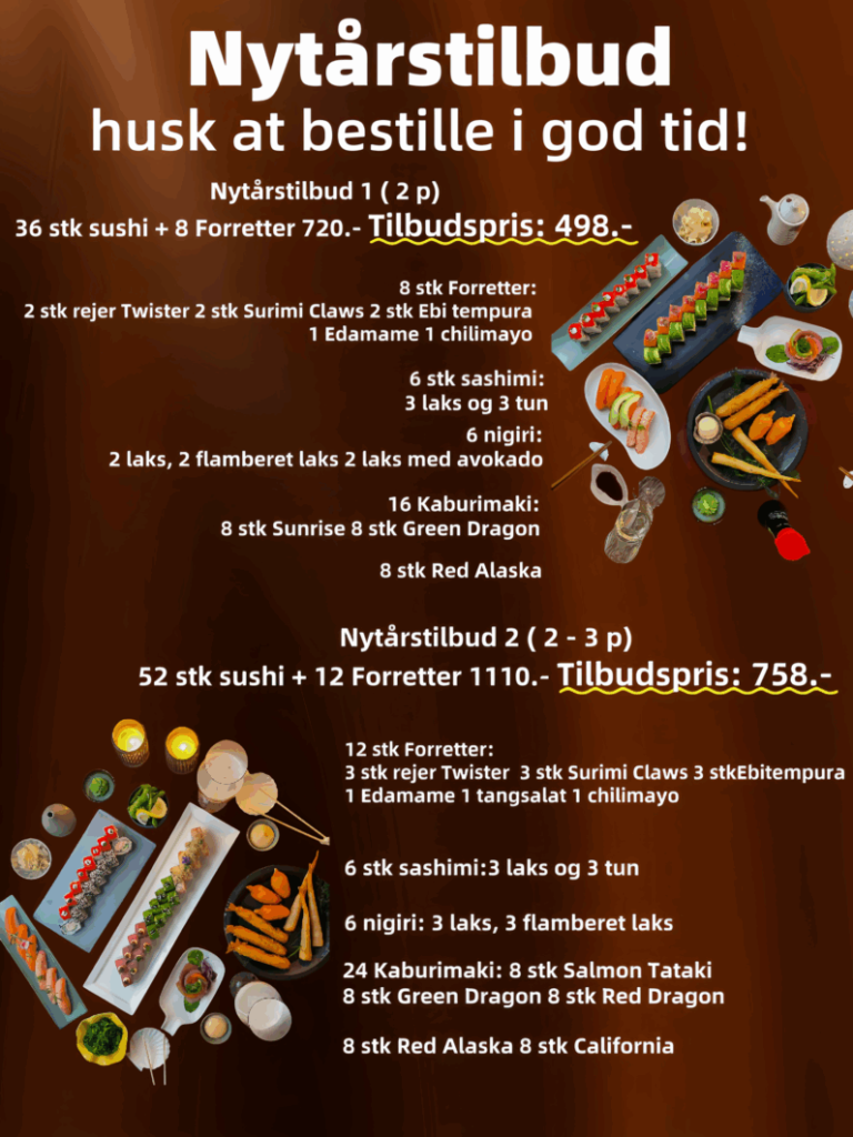 Med en fælles passion for sushi og thai-køkkenet står vores dygtige kokke klar til at servere frisklavede og autentiske retter, der skaber en uforglemmelig oplevelse.